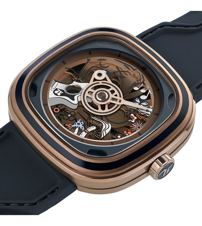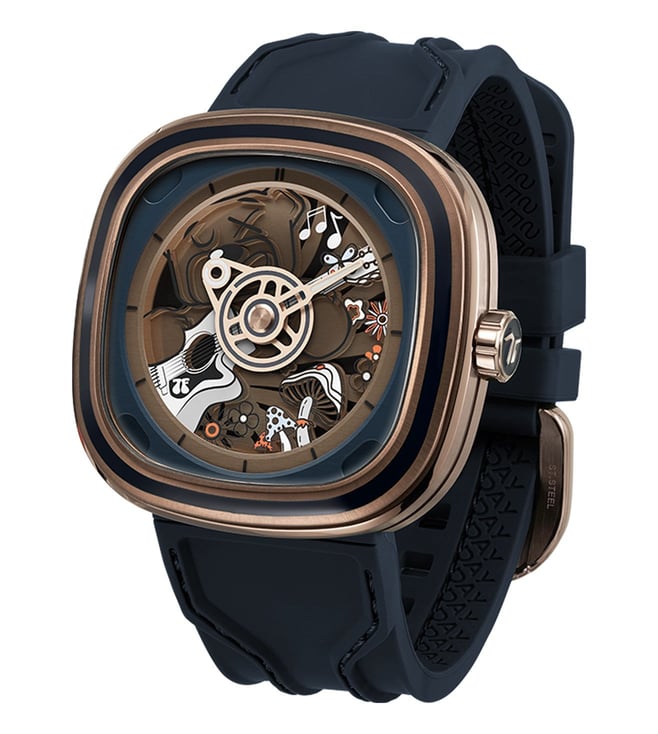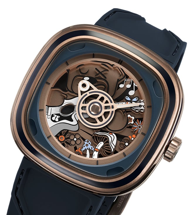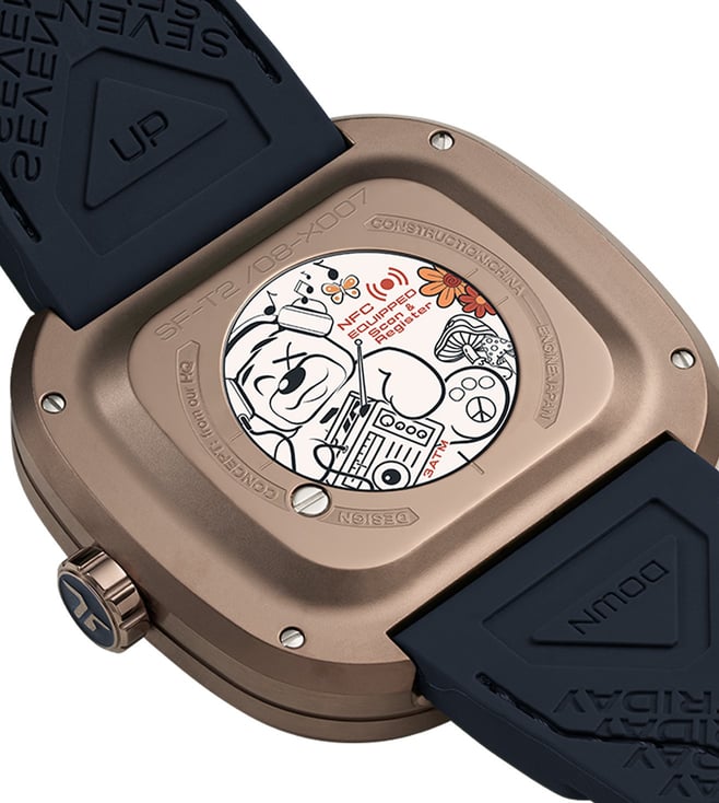 The SEVENFRIDAY T2/08 T-Series Unisex watch, known as the Riley Music, is more than just a timepiece. Designed to measure not only hours and minutes but also moments of joy, it serves as a messenger of peace, love, and happiness. Featuring the playful charm of a mischievous bear, the design embodies a spirit of lightheartedness and hope, encouraging a brighter outlook each day. The T2/08 captures the essence of dreaming big, believing in the good, and celebrating the joy of life through an artistic and vibrant timekeeping¿experience.