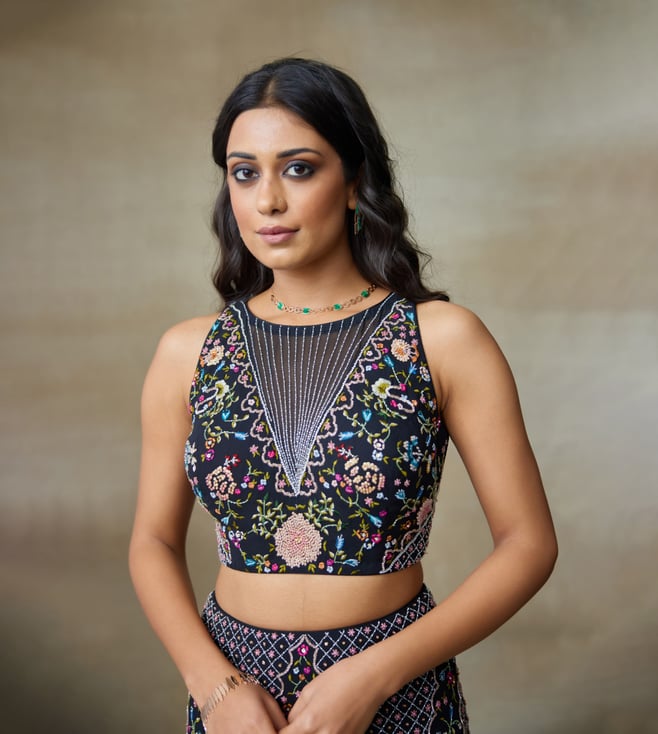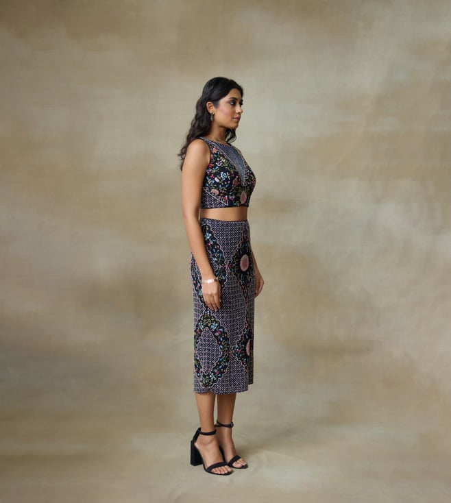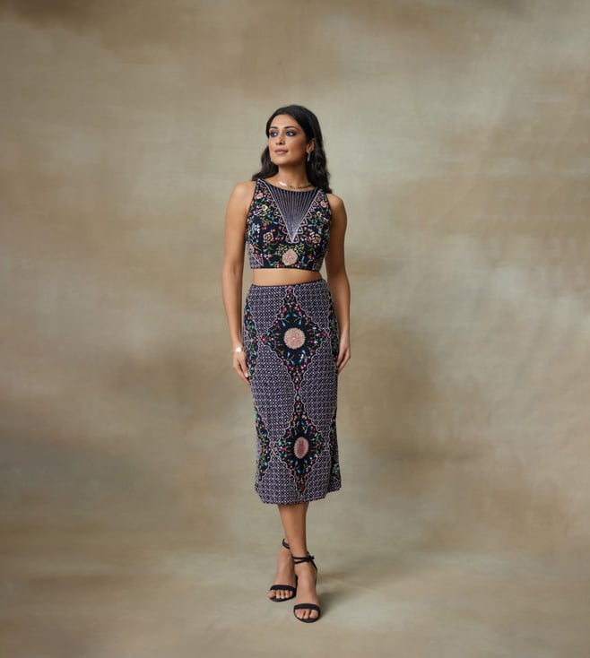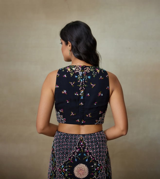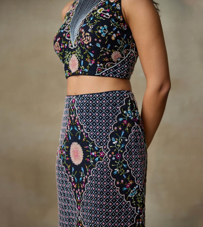 SHASHA GABA Black Kestrel Embroidery Co ord Set