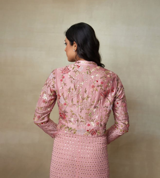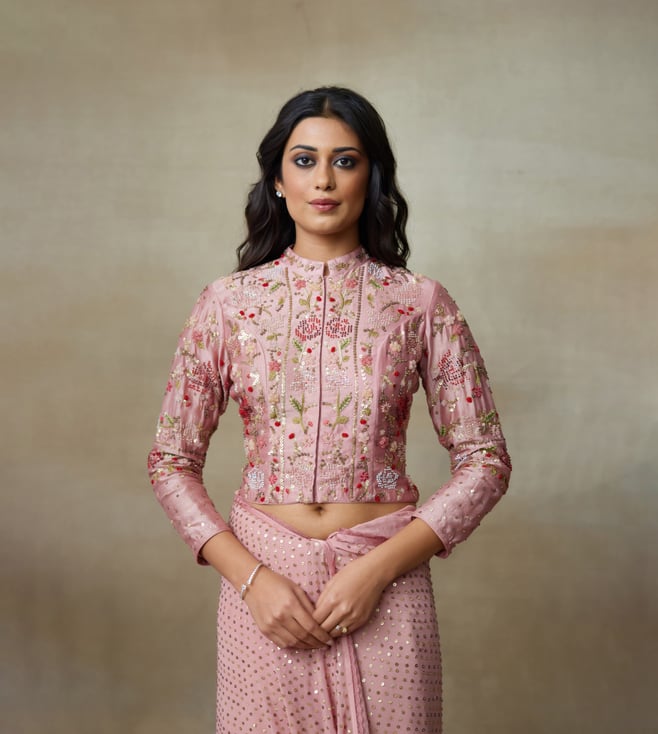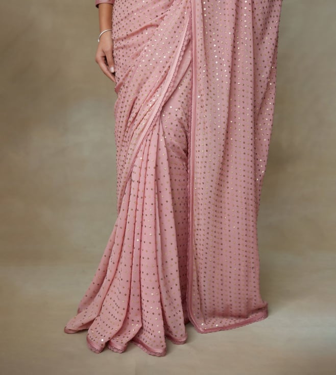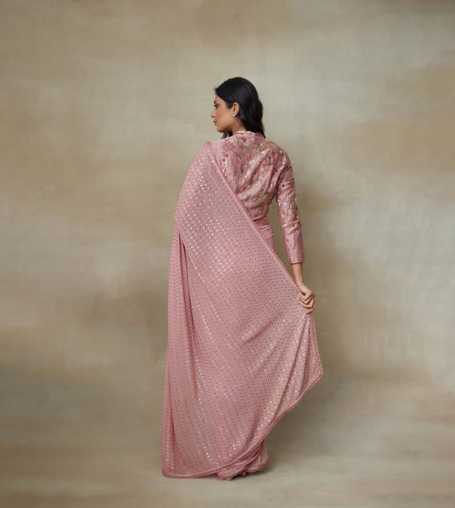 SHASHA GABA Peach Zinnia Embroidery Saree with blouse