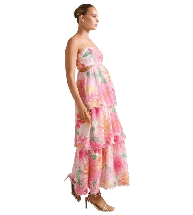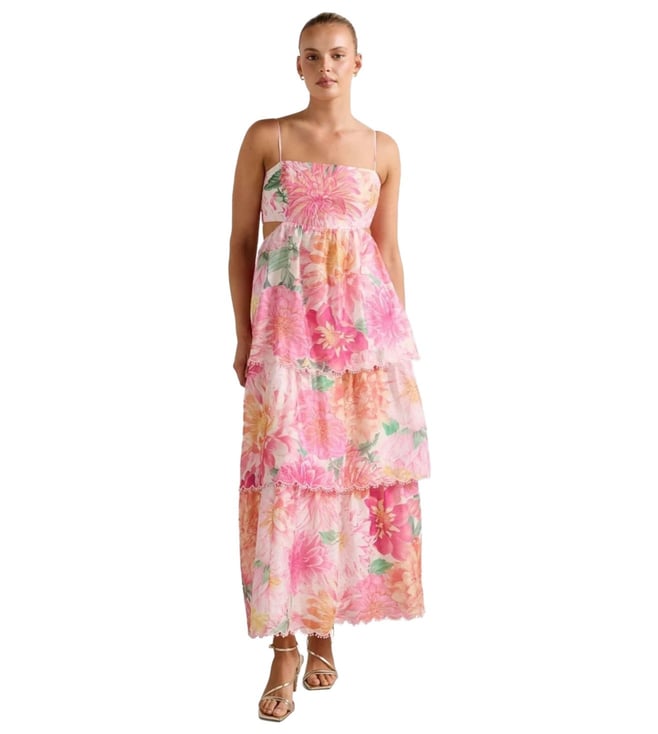 Elevate your wardrobe with the Shauna Tiered Midi Dress from Forever New. This dress effortlessly transitions from day to night, featuring a flattering fit-and-flare silhouette, adjustable shoulder straps, and a tiered midi skirt in a stunning floral print. Made with sustainable LENZING ECOVERO fabric, this dress offers both style and comfort. Perfect for any occasion, this dress is a must-have for the fashion-forward individual looking for timeless elegance with a modern twist.