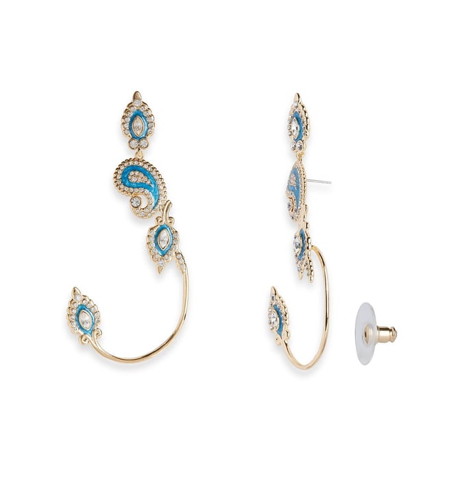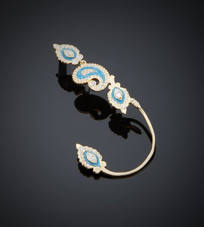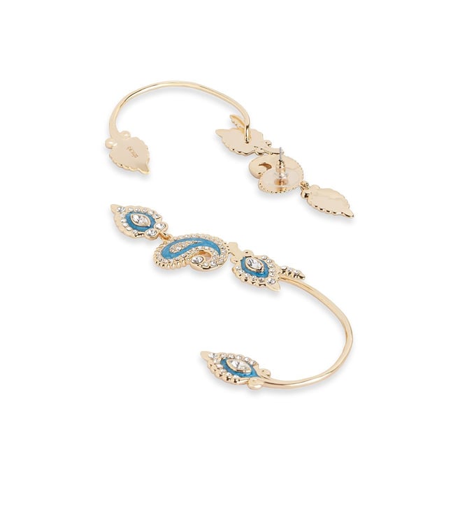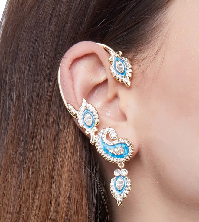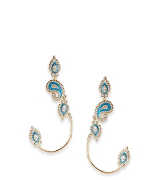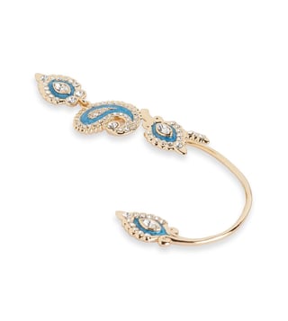 Shaze Gold & Blue Poetry in Motion Marque Paisley Enamelled Zircon Studded Ear Cuff Earrings