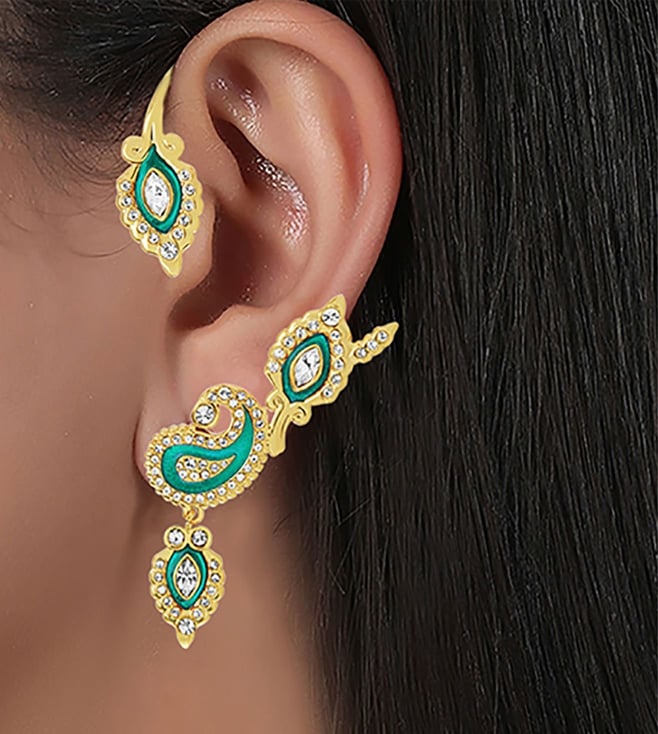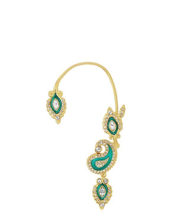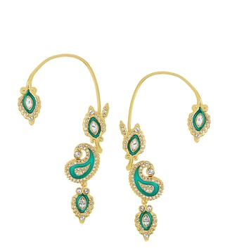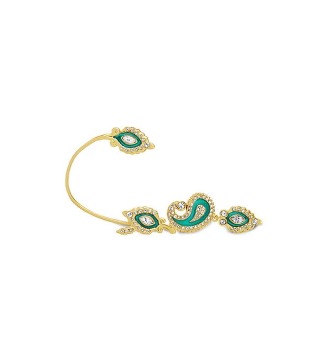 Shaze Gold & Green Poetry in Motion Marque Paisley Enamelled Zircon Studded Ear Cuff Earrings