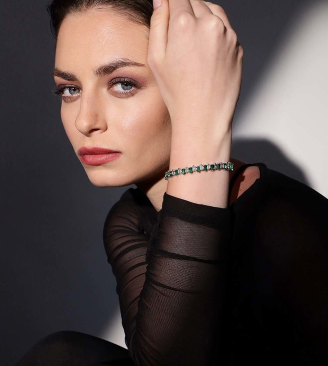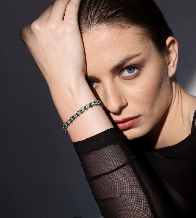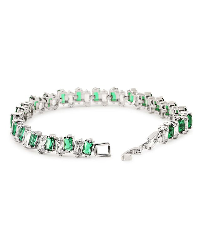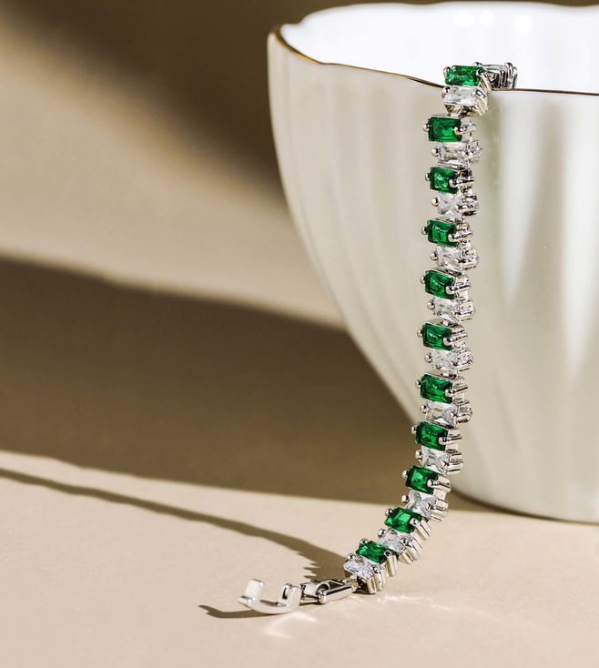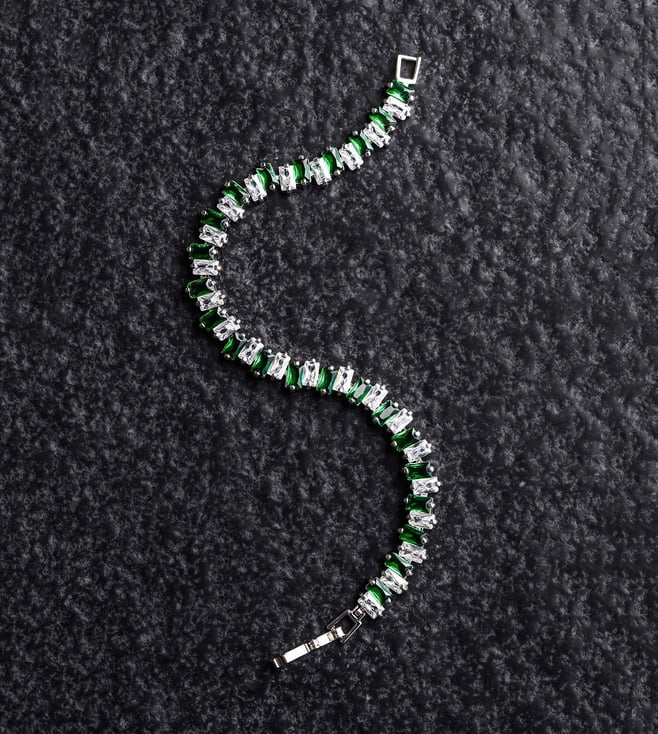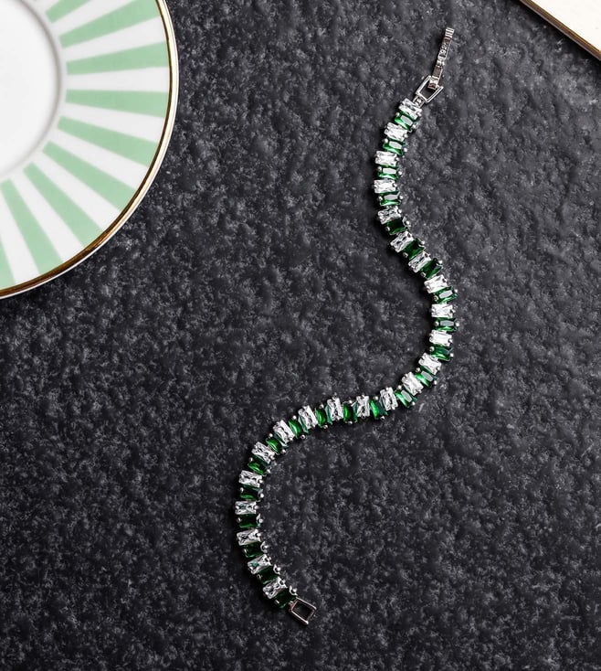 Considered a trendsetter, the Starstream Silver and Green Bracelet from Shaze's Hype Me Up Collection personifies audacious individuality. Fiery zirconia stones, born from flames, contrast in dual tones, producing a visually impactful explosion. Constructed from sturdy, antimicrobial copper, this piece comes with a self-assured design. With its pioneering design and carefully arranged crystal-clear stones, it adds an extraordinary touch to your ensemble.