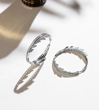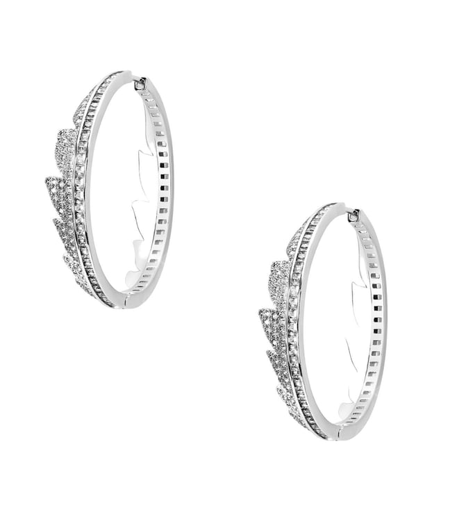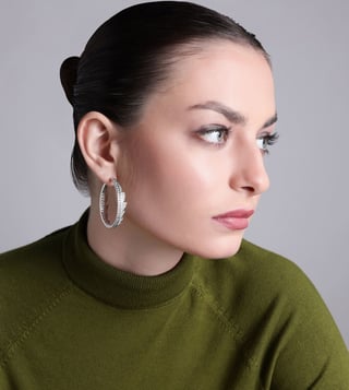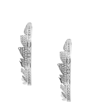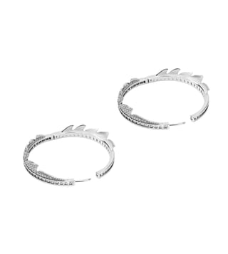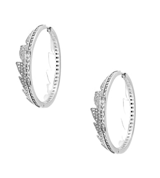 Breaking free from the usual hoop design, the Forest Fire Silver Hoop Earrings from Shaze�s Sundowner Secrets Collection boast a remarkably distinct aesthetic. Introducing a fresh blend of blank and bloom design technique, these earrings reveal an intricate design visible through the open spaces at the front. The careful selection of the detailed fire-like silhouette makes a significant statement in design. Adorned strategically with stones born of fire, these hoops daringly challenge conventional norms when it comes to pairing jewellery with outfits.
