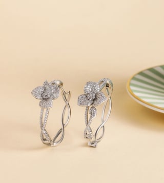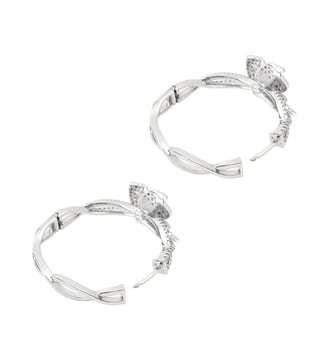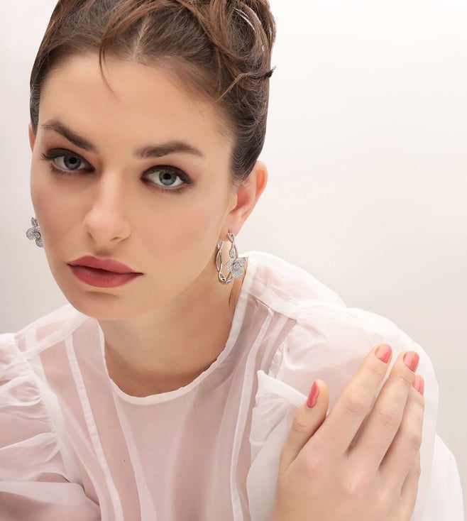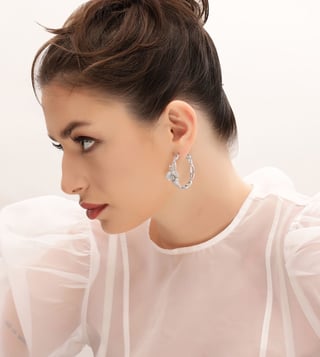Shaze's Sundowner Secrets Collection breaks the mould with the Hermia's Heart Silver Hoop Earrings, a design that speaks a new language. These earrings are a captivating blend of negative space and flourishing detail, revealing an intricate pattern through their open front. The silhouette itself is a statement piece, featuring a captivating bio-mimicry motif that blossoms from its edge. Further defying convention, fie-birthed stones are layered strategically, challenging traditional ideas of how jewellery complements an outfit.