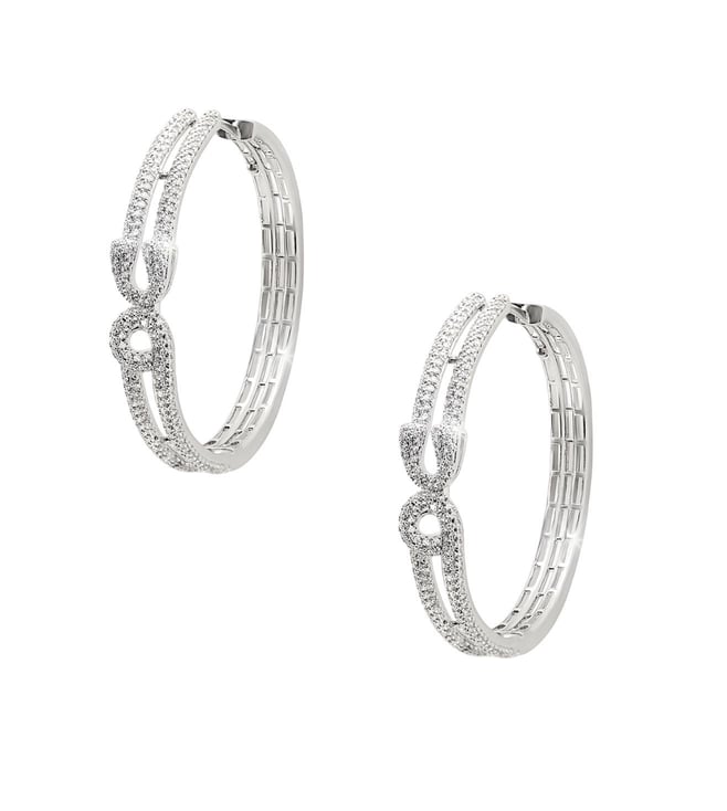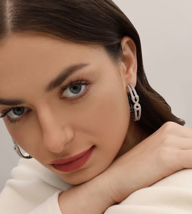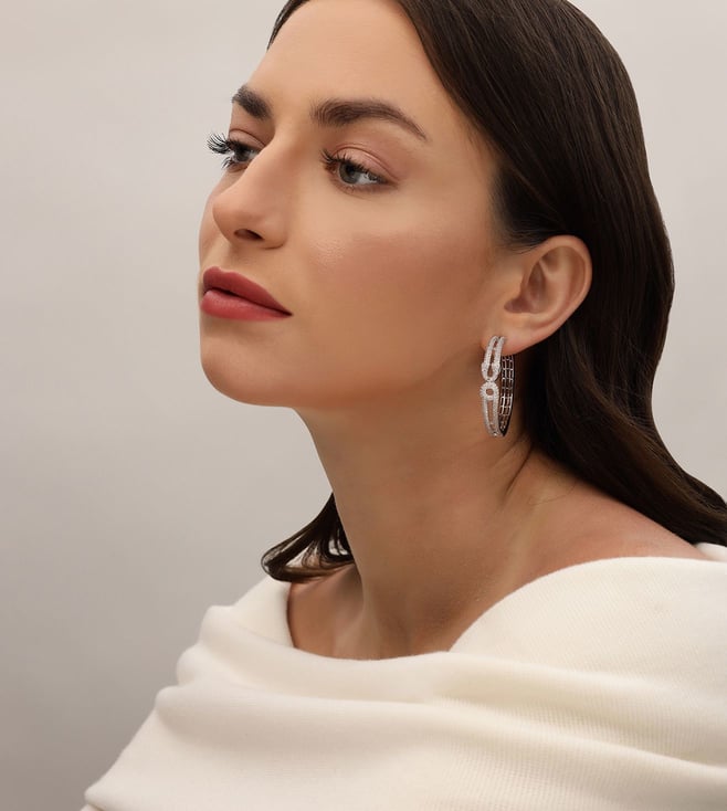 Shaze's Sundowner Secrets Collection presents the Orb Silver Hoop Earrings, inviting you to embrace the extraordinary. These captivating hoops break from tradition, boasting a unique and distinctive aesthetic. A mesmerizing interplay of negative space and intricate detail reveals a captivating pattern peeking through the open front. Stones born from fire, set within these hoops, defy conventional notions of how jewellery complements an outfit. Embrace your individuality and redefine accessorizing with the Orb silver hoop earrings.