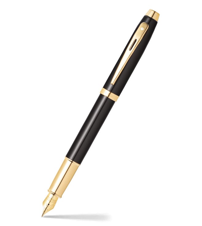Glossy Black SH 100 Brass Trim Fine Nib Fountain Pen