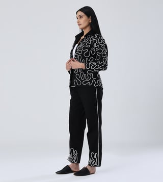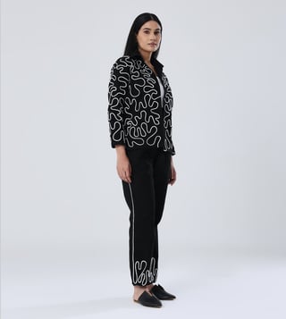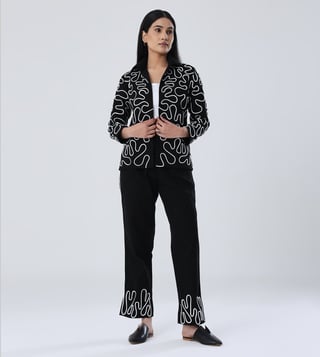 Elevate your wardrobe with this moonlight blazer made in organic cotton twill, meticulously hand-embellished with intricate white dori work. A true statement piece, this blazer seamlessly blends timeless elegance with a touch of modern artistry. Crafted for the bold yet sophisticated, it¿s tailored for a relaxed fit, making it both comfortable and chic.