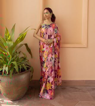 Shibui Pink Bemberg Gaji Silk Regular Fit Saree
