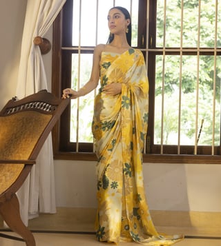 Elegant drapes weaving stories, our MOASIC YELLOW BEMBERG SILK saree celebrate tradition with a modern twist. Luxurious fabrics, vibrant hues, and intricate motifs redefine timeless beauty. Embrace grace and culture in every woven fold. This product was mabe by ARTISAN RITIK