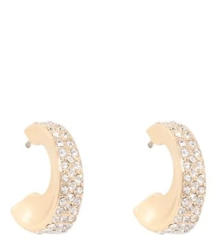 Make a bold statement with the shiloh angle stone earrings. These stunning hoops feature a chunky half hoop design with a modern twist, embellished with shiny crystals in a gold tone setting. Perfect for adding a touch of glamour to any outfit, these earrings have a post back fastening for pierced ears. Elevate your look with these Forever New earrings that are sure to turn heads wherever you go.