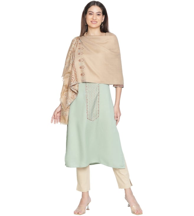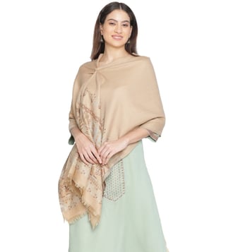 Make a bold fashion statement with this designed shawl, showcasing intricate patterns and rich, vibrant colours. It is crafted from 95 percent wool and 5 percent lurex. Disclaimer: Product colour may slightly vary due to photographic lighting sources. Country of Origin - India.
