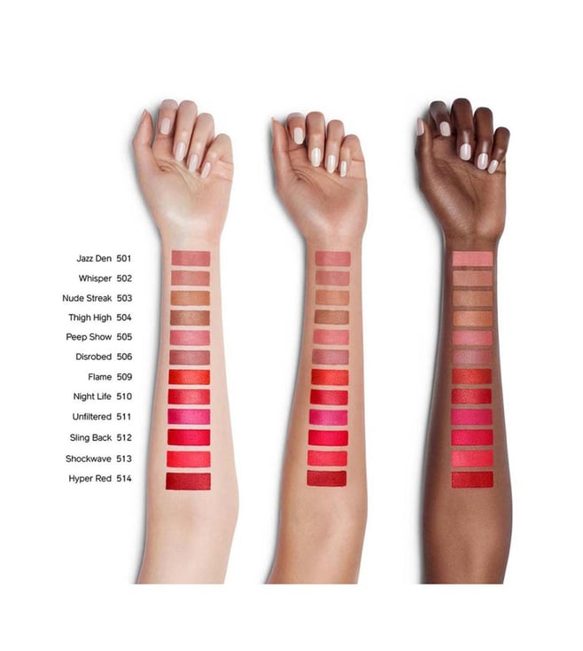 Velvet Powders: Lend lips a matte, airbrushed finish that stays put for eight hours.Optical Brightening Pigments: Provide intense, vibrant color.Lightweight Waxes and Oils: Create a hydrating-yet-weightless veil of color that melts seamlessly onto lips.