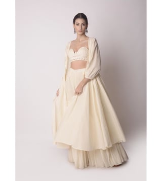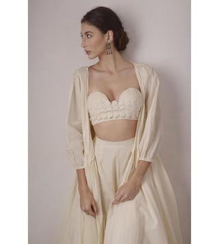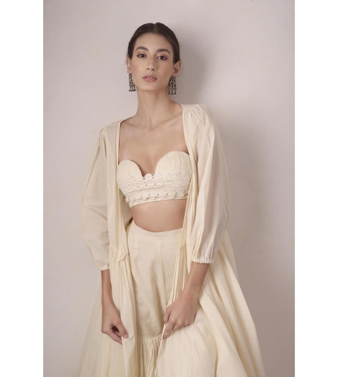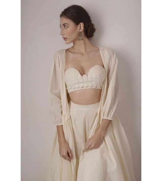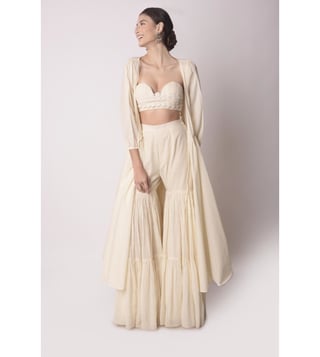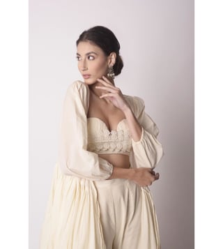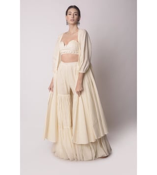 Shwetanga Ivory Gendra Circular Jacket with Bustier and Sharara