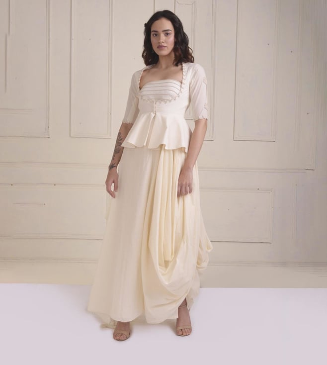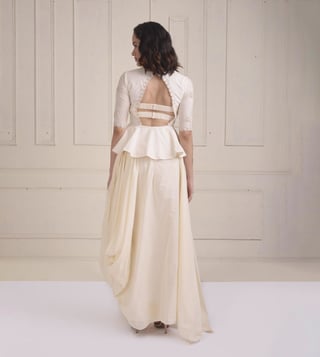 Shwetanga Ivory Zarra Dori Embroidered Peppum Jacket with a Draped Gown