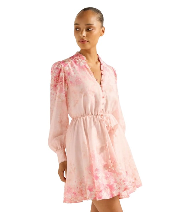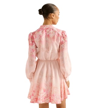 Elevate your wardrobe with the Shyla Printed Skater Mini Dress from Forever New. Crafted with sustainable TENCEL Lyocell, this dress offers a luxurious feel and beautiful drape. Featuring a stand-up neckline, blouson sleeves, and a waist tie with 3D floral accents, this dress is perfect for any occasion. The vibrant floral print and scalloped trim add a touch of feminine charm, while the lightweight fabrication ensures all-day comfort. Update your look with this stylish and eco-friendly dress that you'll love season after season.