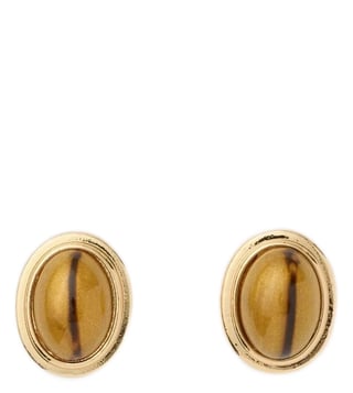Feminine glamour meets refined simplicity with the signature arianna oval stud stone earrings from Forever New. Designed using recycled metals these elegant studs feature an oval shape with a rich brown stone at the centre for a warm sophisticated finish. The glossy gold tone setting adds timeless appeal making them perfect for both everyday looks and special occasions. Secured with a comfortable push back fastening they are a versatile addition to your jewellery collection.