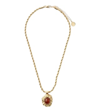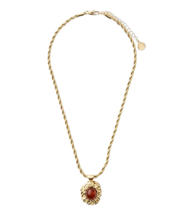 Feminine glamour meets sculptural style with the signature rebecca molten stone pendant necklace from Forever New. Crafted using recycled metals this necklace features a deep brown molten inspired stone set in a polished gold tone finish. The sturdy adjustable chain allows easy styling with different necklines while the secure lobster clasp ensures comfortable wear. A timeless piece that adds a refined statement to both casual and occasion outfits.