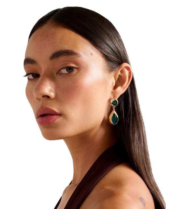 Elevate your evening look with the signature tessa teardrop earrings from Forever New. Featuring rich emerald green stones set in a textured gold toned frame, these earrings are a striking choice for any special occasion. The push back fastening makes them easy to wear, adding a touch of feminine glamour to your outfit. Crafted with recycled metals and a focus on elevated design, these earrings are the perfect update your wardrobe needs. Complete your look with this timeless and elegant piece from the signature range.