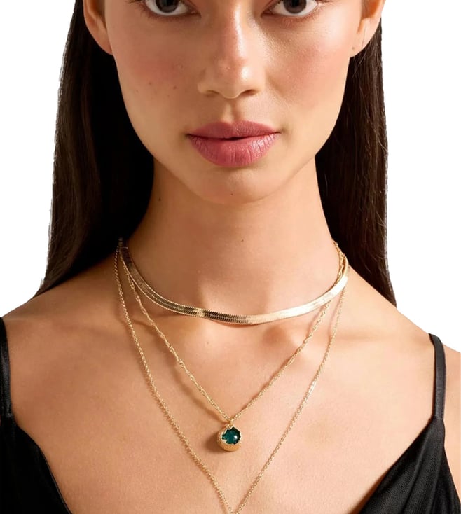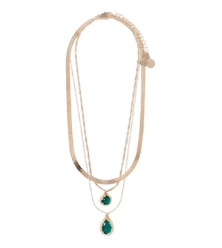 Elevate your look with the feminine glamour of our signature tessa teardrop pendant. This stunning triple layered necklace features two emerald green pendants in a textured frame, adding instant polish to your neckline. Made with recycled metals and a mix of flat chain and rope chains, this adjustable necklace is the perfect update your wardrobe has been waiting for. Complete with a gold tone setting and lobster clasp fastening, this pendant is a must have accessory for every occasion. Experience quality and style with Forever New's signature range.