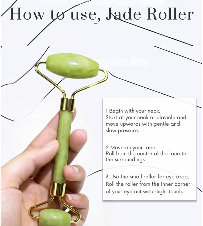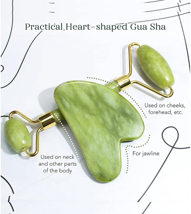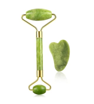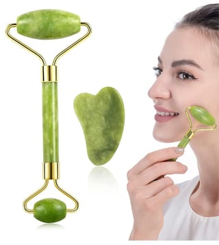 Experience the timeless beauty ritual that promotes radiant, healthy-looking skin with the Signaxo Himalayan Jade Green Roller & Gua Sha Set. Crafted from 100% natural jade stone, this dual-purpose facial tool is designed to enhance your skincare routine by encouraging better product absorption, boosting circulation, and reducing puffiness.Ideal for daily use, this traditional skincare solution supports skin brightening, firmness, and overall rejuvenation, all from the comfort of your home.