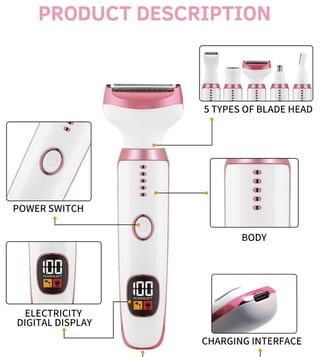 Signaxo Sharp 5in1 Rechargeable Shaver Trimmer For Eyebrow Body Bikini Facial Hair Removal