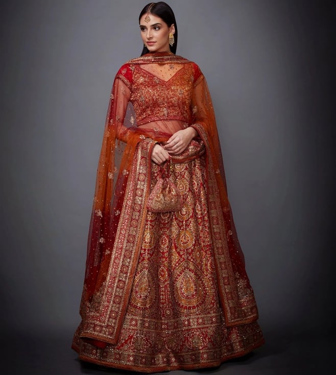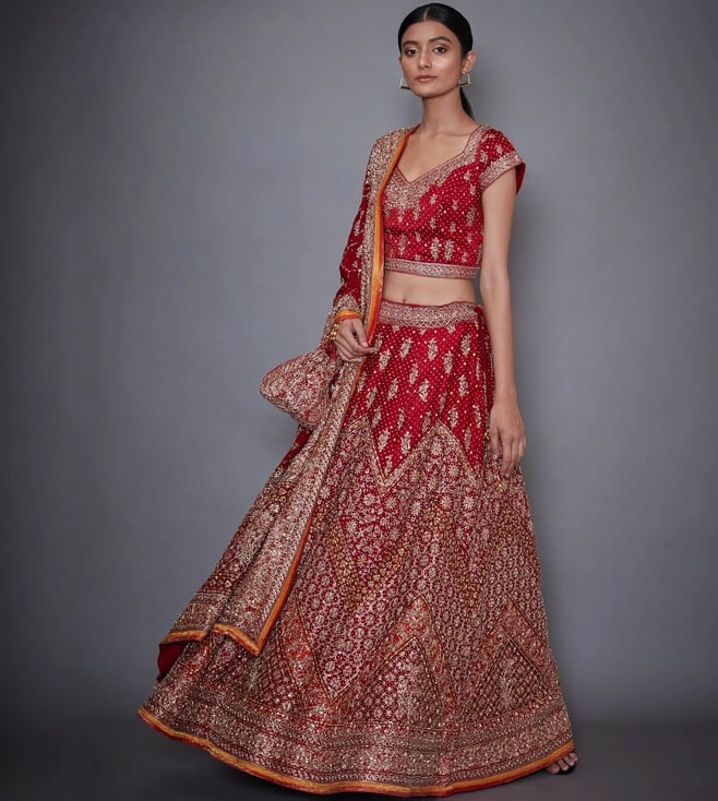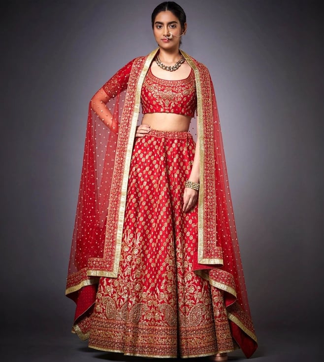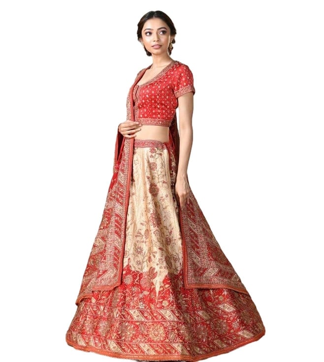 Mandana Cherry Red Silk Chanderi Lehenga Set