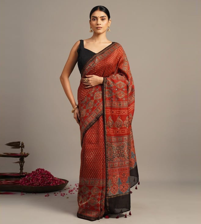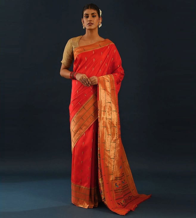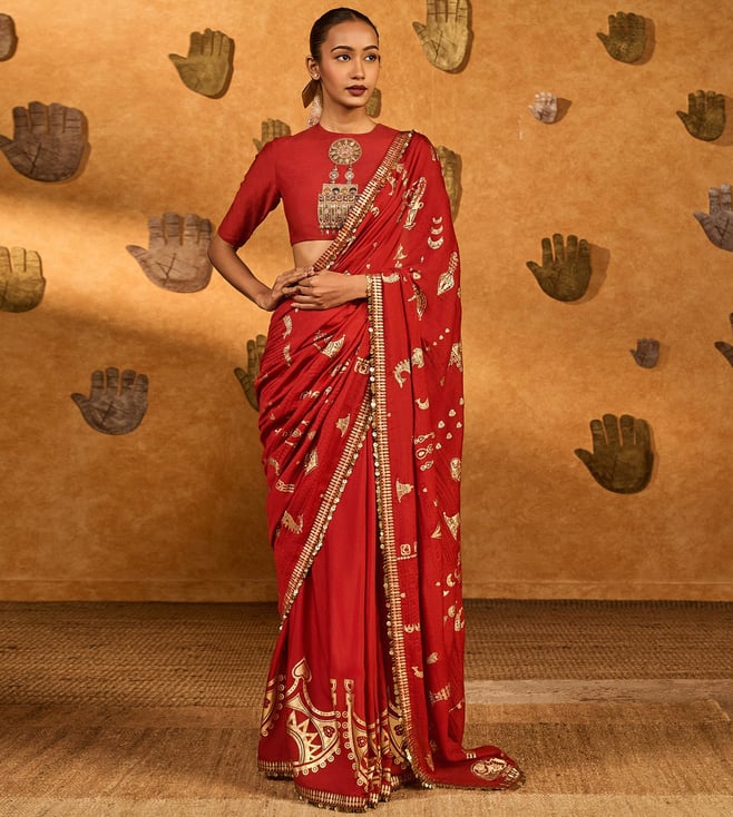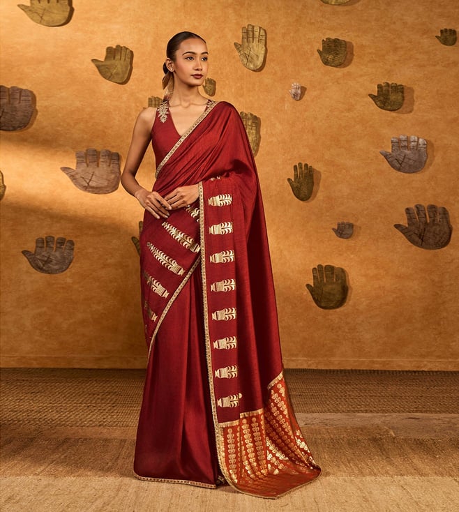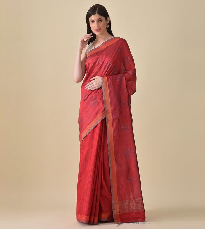 Red Kumar Girija Embroidered Saree with Unstitched Blouse
