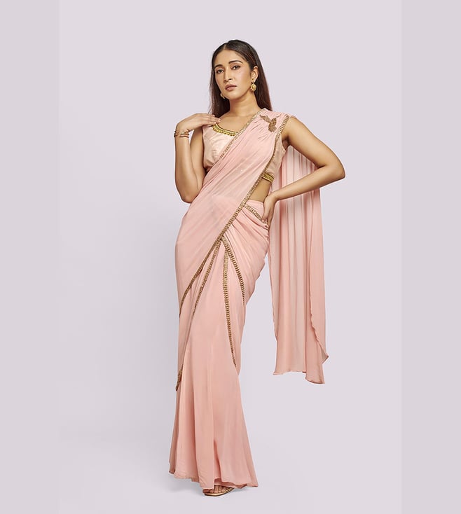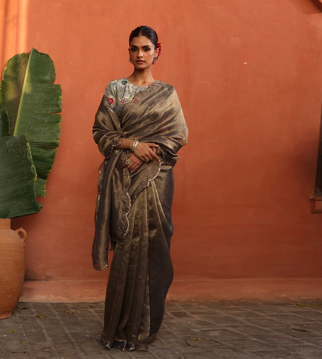 Gold and Bronze Silk Embellished Saree with Stitched Blouse