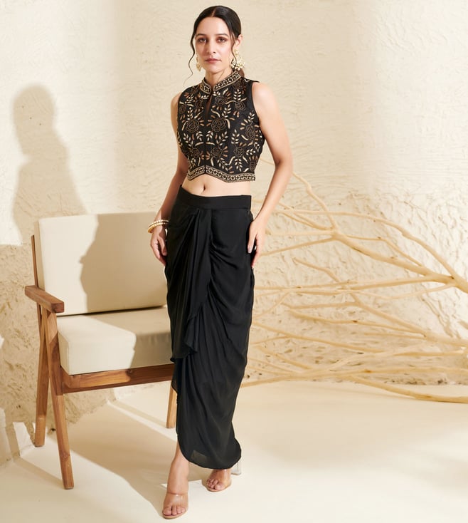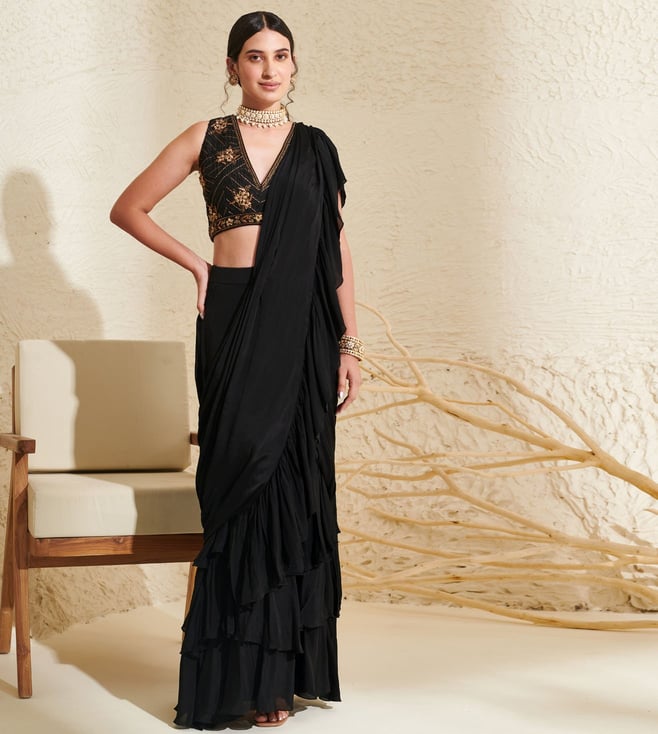 Black Chiffon & Silk Embroidered Saree