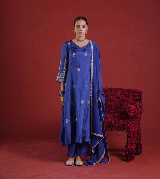 Blue Regular Fit Kurta Set with Dupatta