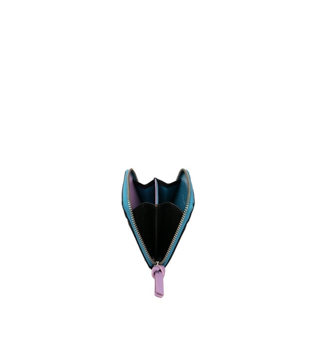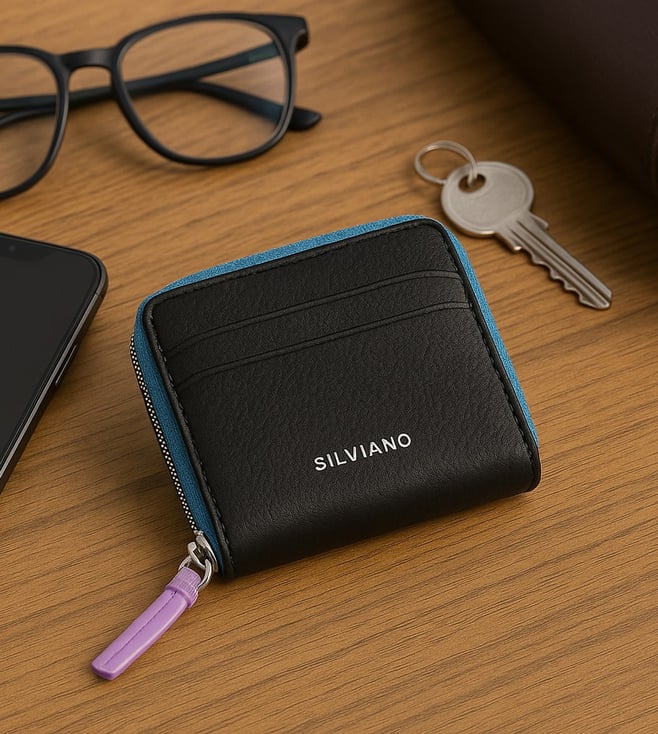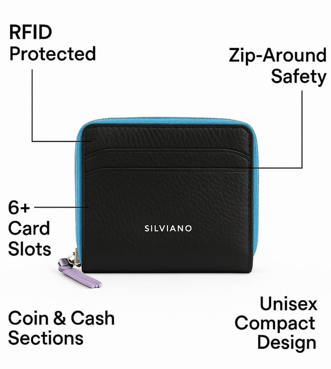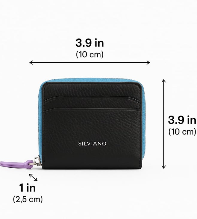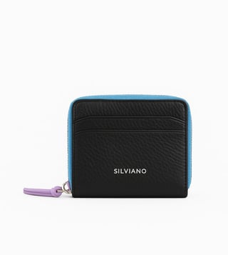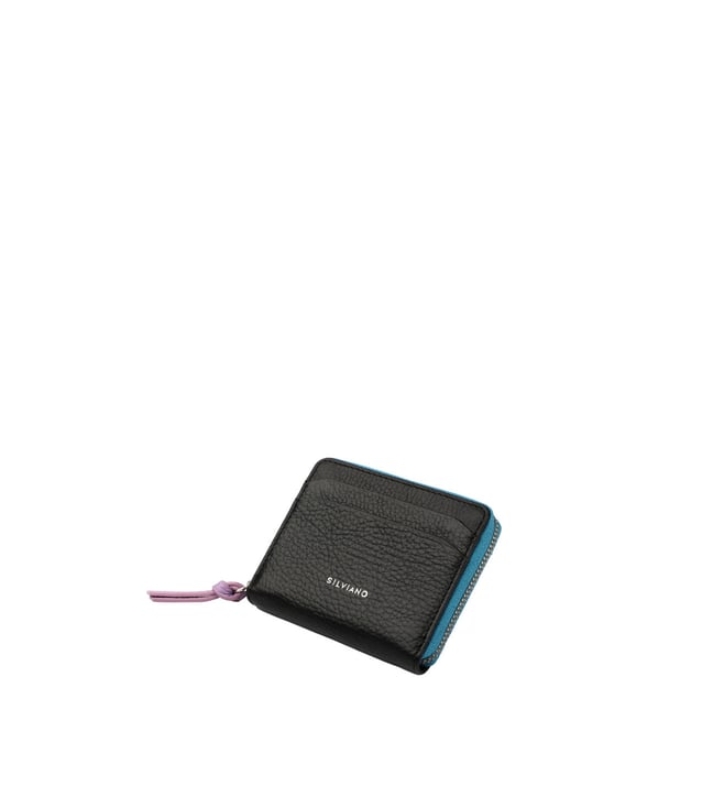 SILVIANO Black Rainbow Leather 4 Card Slot RFID Zip Around Wallet