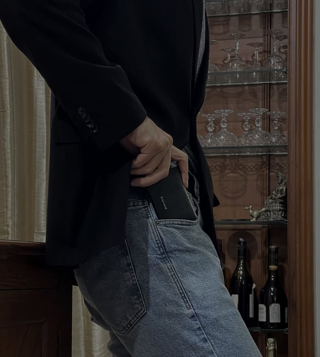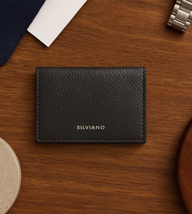 SILVIANO Black Upcycled Leather 3 Card Slot RFID Bi-Fold Wallet