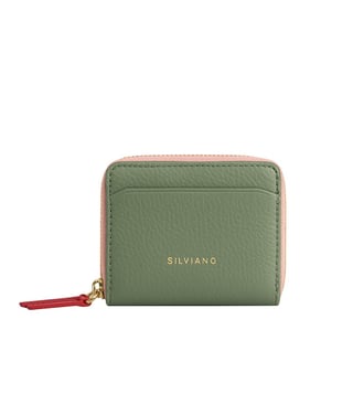SILVIANO Grey Rainbow Leather 4 Card Slot RFID Zip Around Wallet