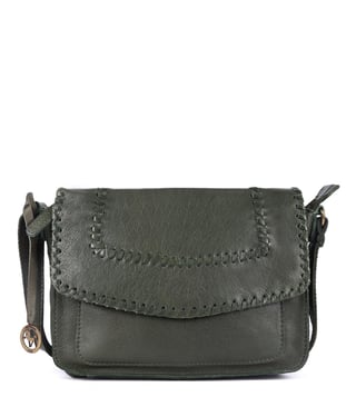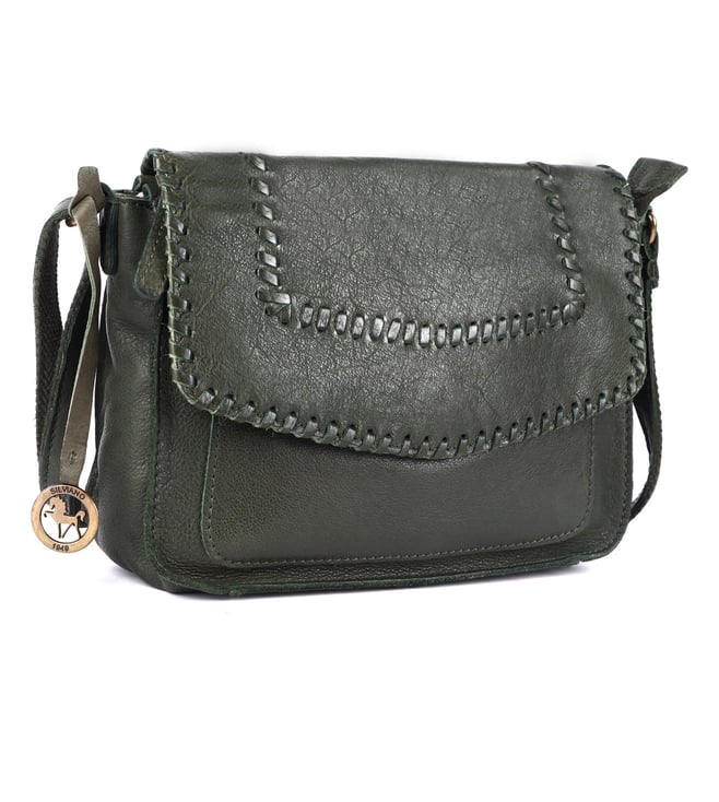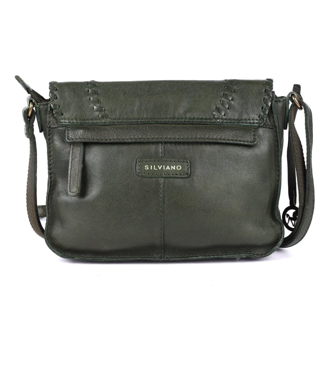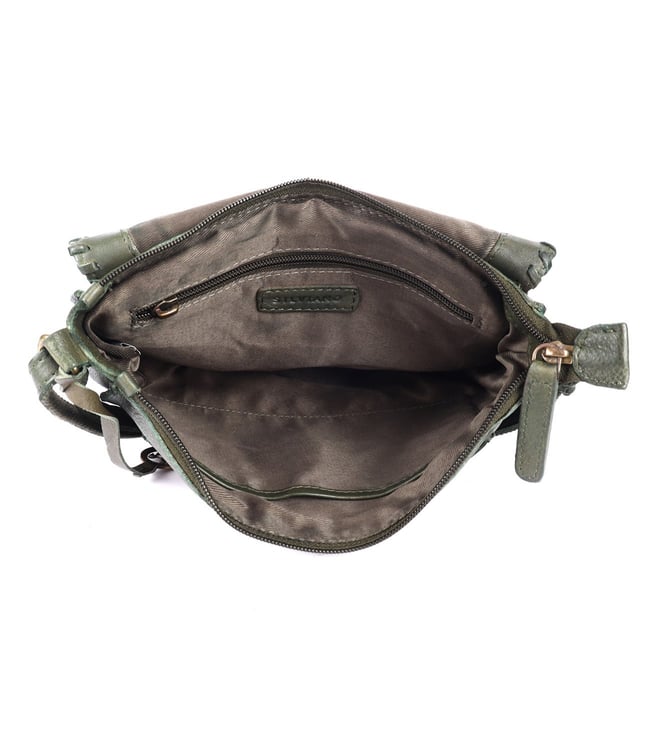 SILVIANO Khaki Legacy Richmond Textured Small Leather Cross Body Bag