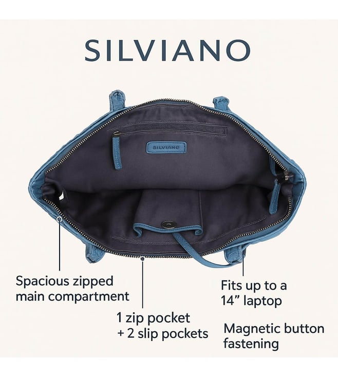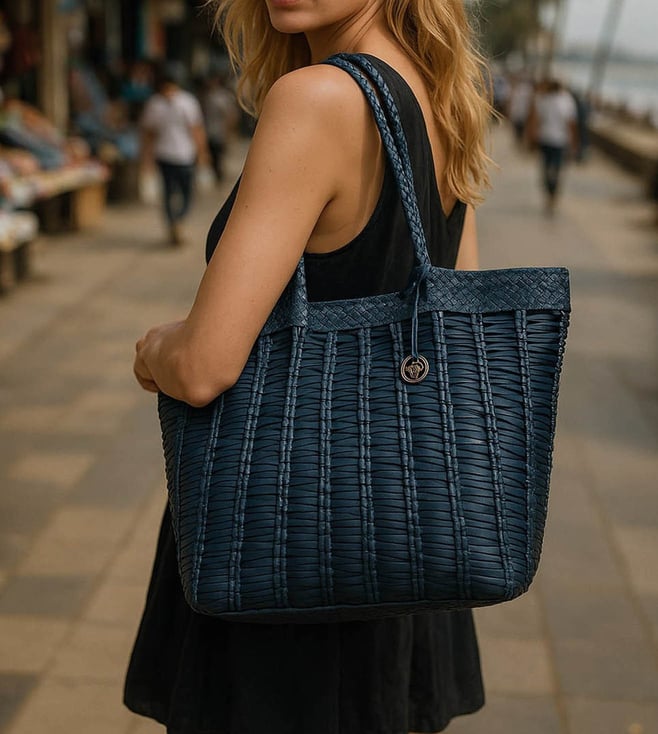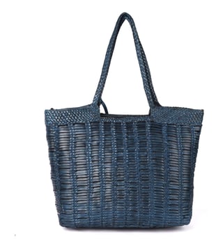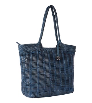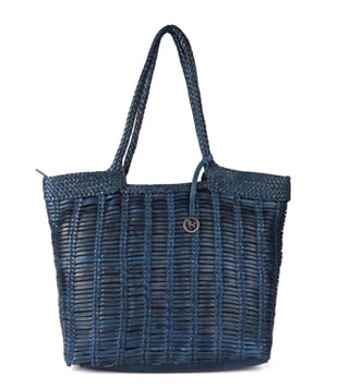 SILVIANO Midnight Blue Legacy Woven Large Leather Tote