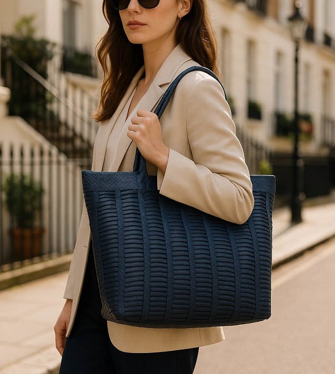 Meet the Paddington a refined, handwoven leather shopper from the Legacy collection by Silviano, celebrating 75plus years of masterful craftsmanship. Handcrafted in rich navy leather, this spacious tote blends time honoured weaving artistry with modern functionality. Its supple yet structured silhouette is thoughtfully designed for women on the go, offering elegance without compromise