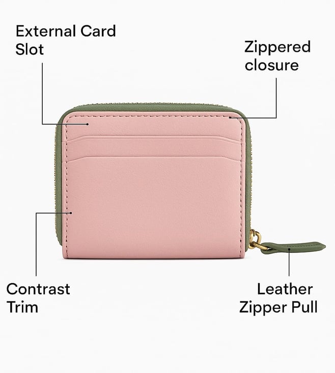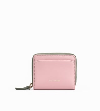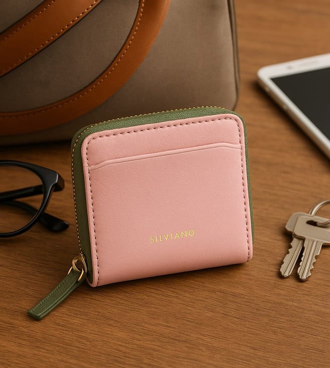 SILVIANO Pink Rainbow Leather 4 Card Slot RFID Zip Around Wallet