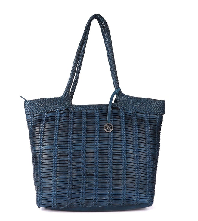 Midnight Blue Legacy Woven Large Leather Tote