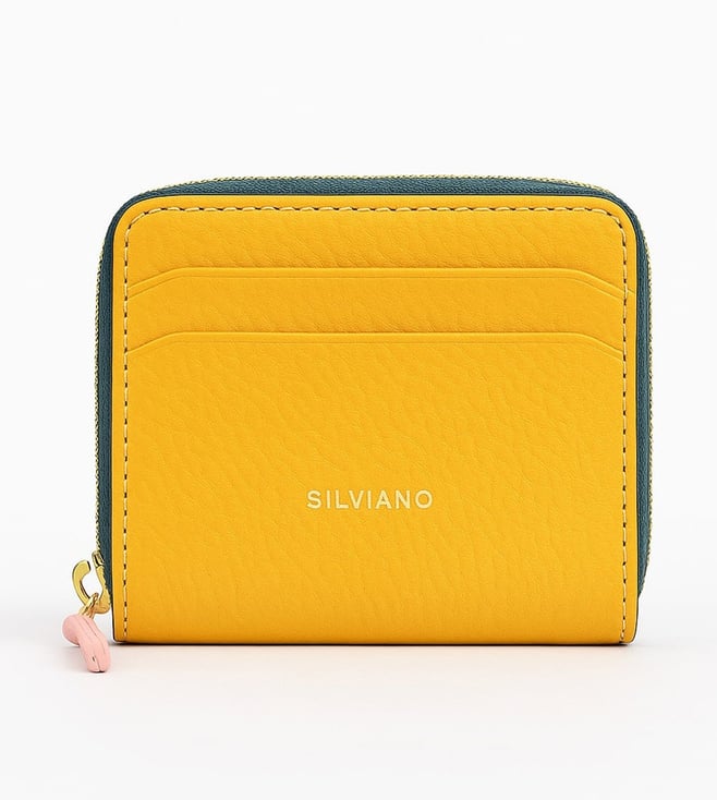 Yellow Rainbow Leather 4 Card Slot RFID Zip Around Wallet