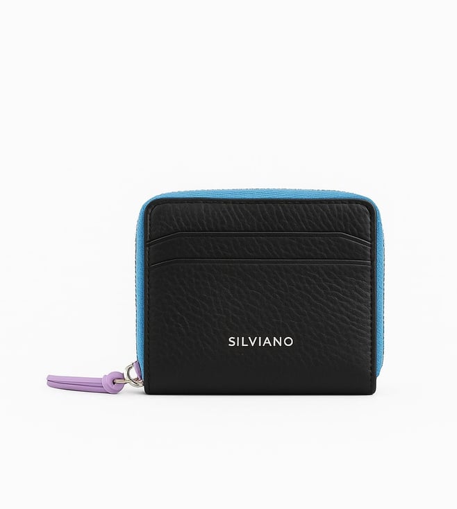 Black Rainbow Leather 4 Card Slot RFID Zip Around Wallet