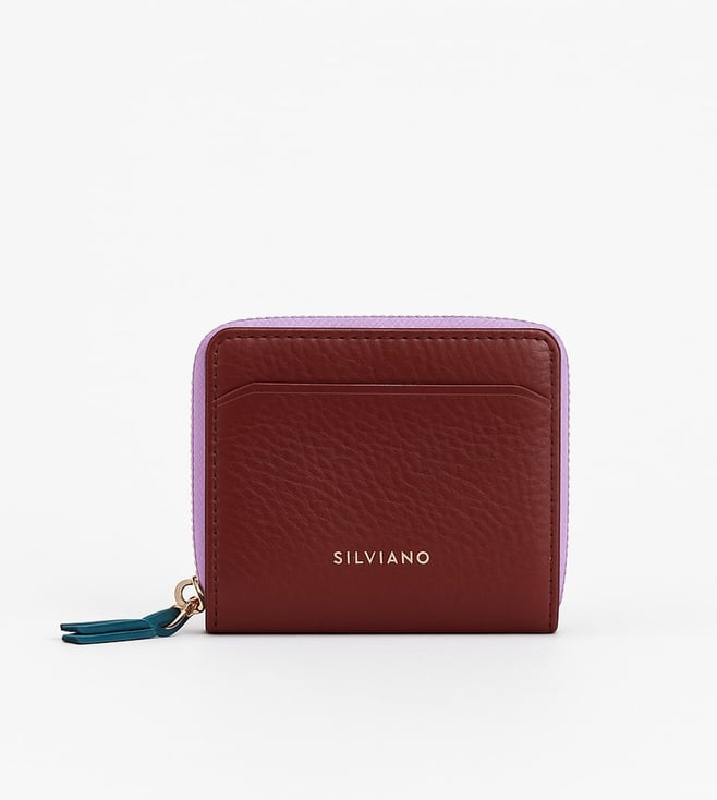 Maroon Rainbow Leather 4 Card Slot RFID Zip Around Wallet
