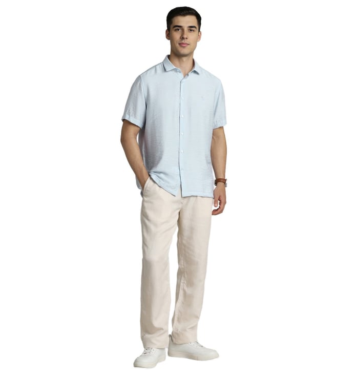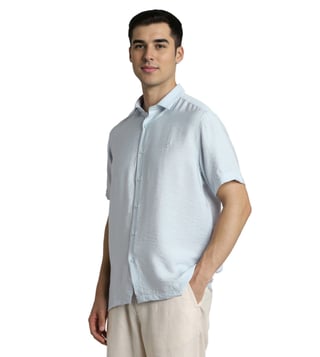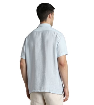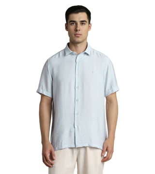 Elevate your daily style with the Simon Carter Landon Blue Regular Fit Shirt. Crafted from luxurious rayon, this shirt features a classic shirt collar and short sleeves for a polished yet relaxed look. Perfect for the modern man on the go, this versatile piece effortlessly transitions from work to weekend wear. Add a touch of sophistication to your wardrobe with this must-have essential.