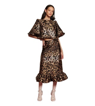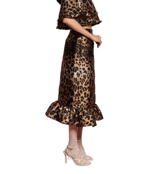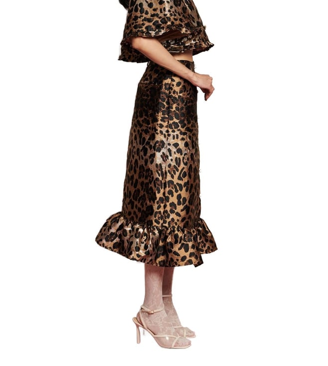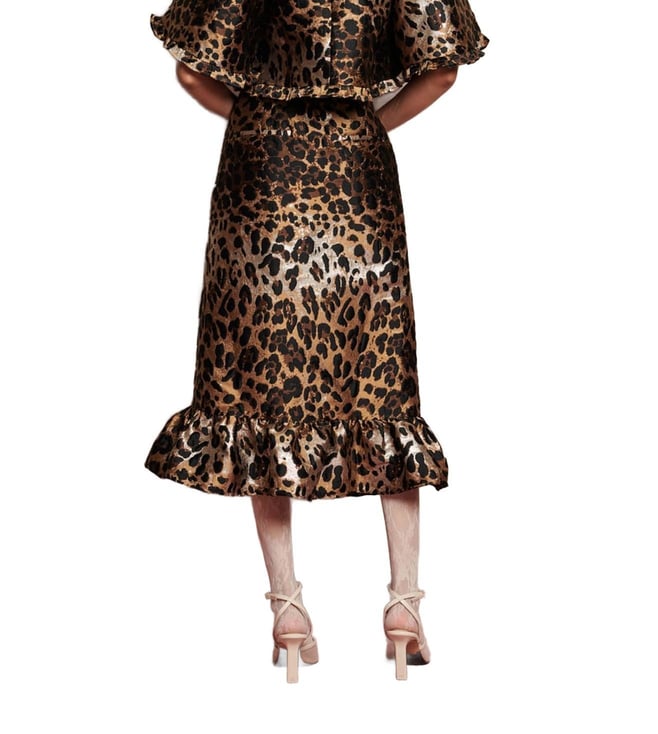 SISTER JANE Brown Leopard Jacquard Flared Fit Printed Skirt