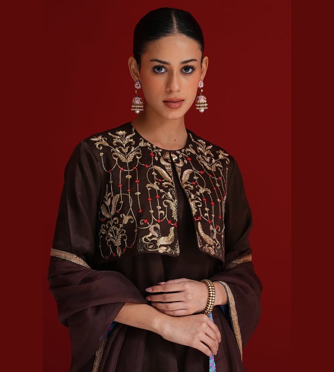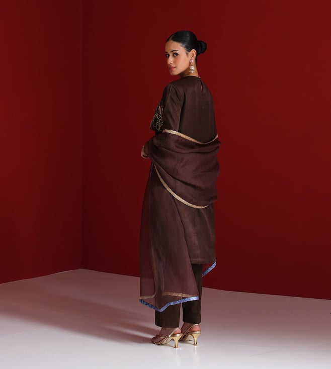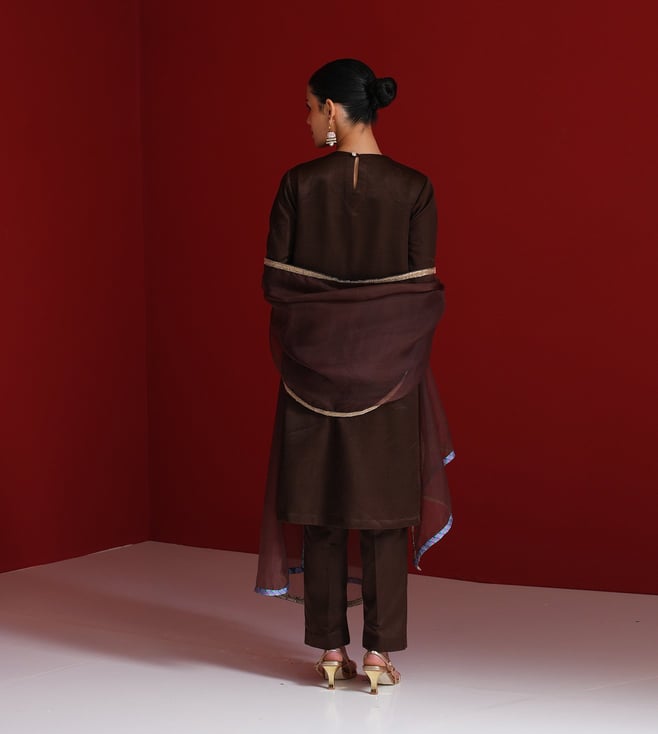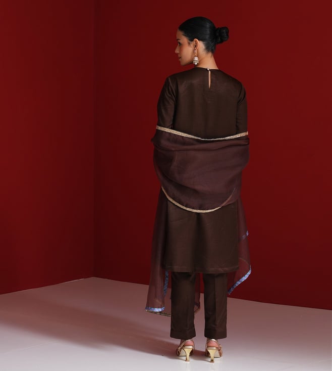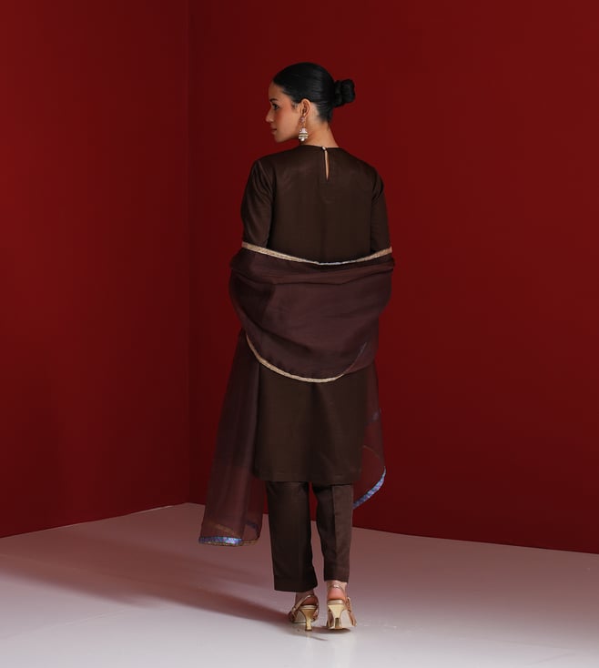 Sitaraa Brown Organza Regular Fit Dupatta