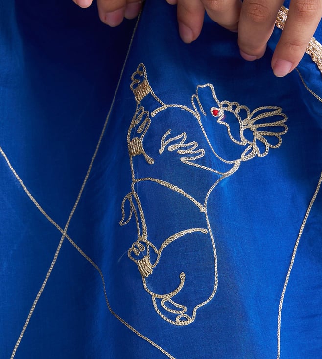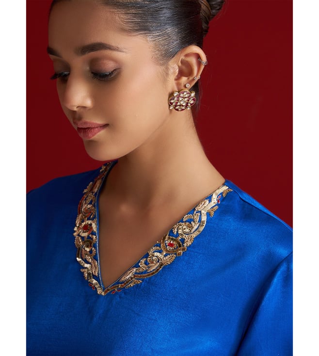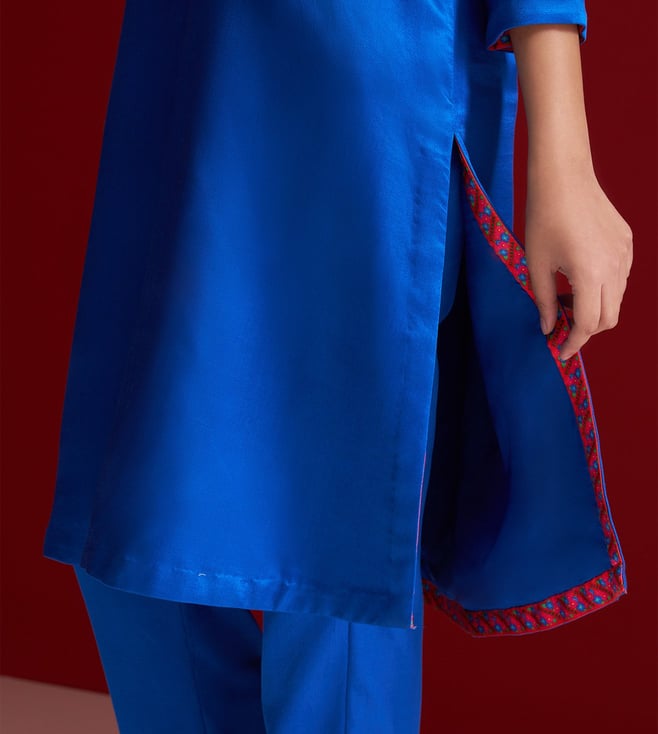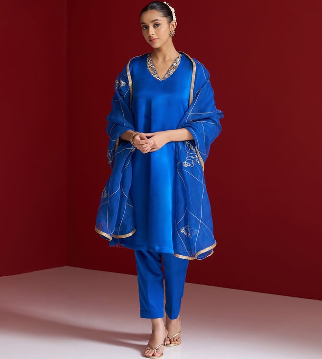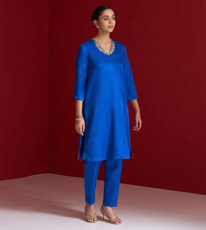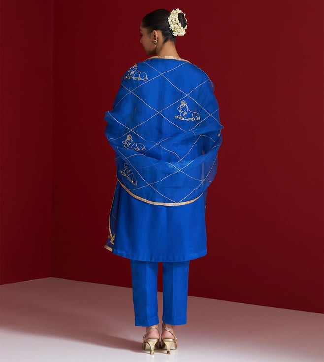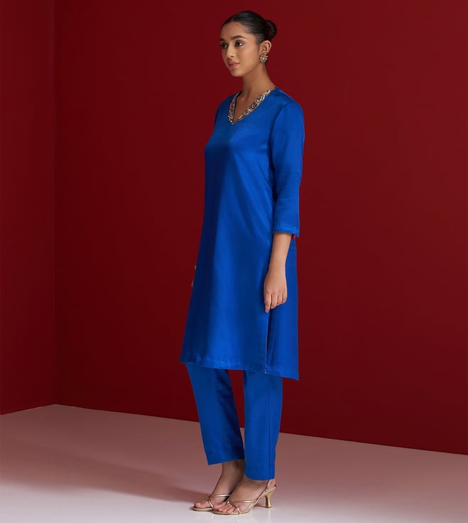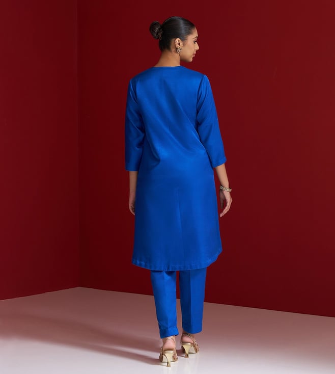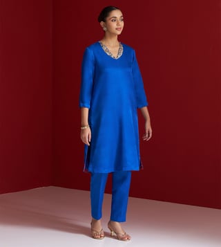 Cobalt Blue Gajji Silk Regular Fit Kurta With Pants