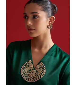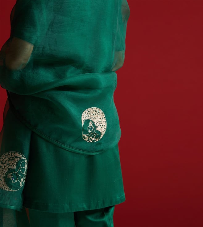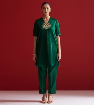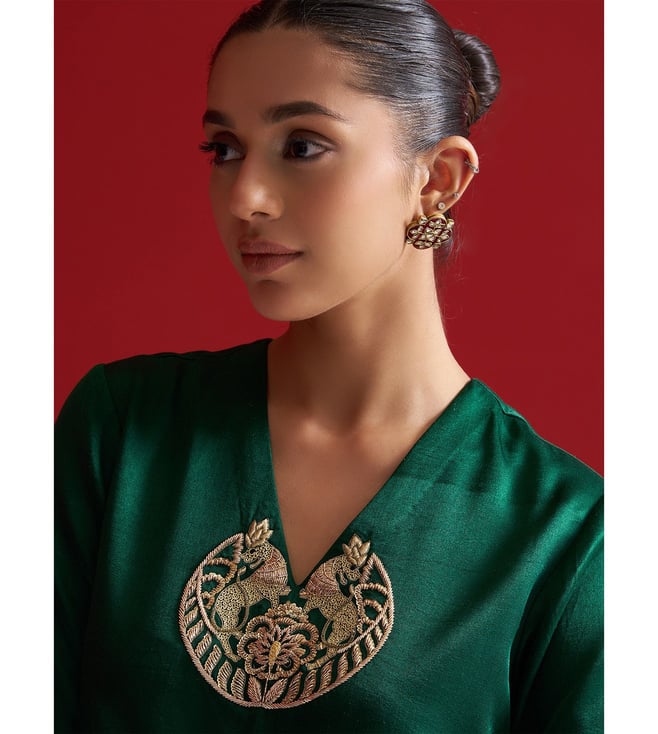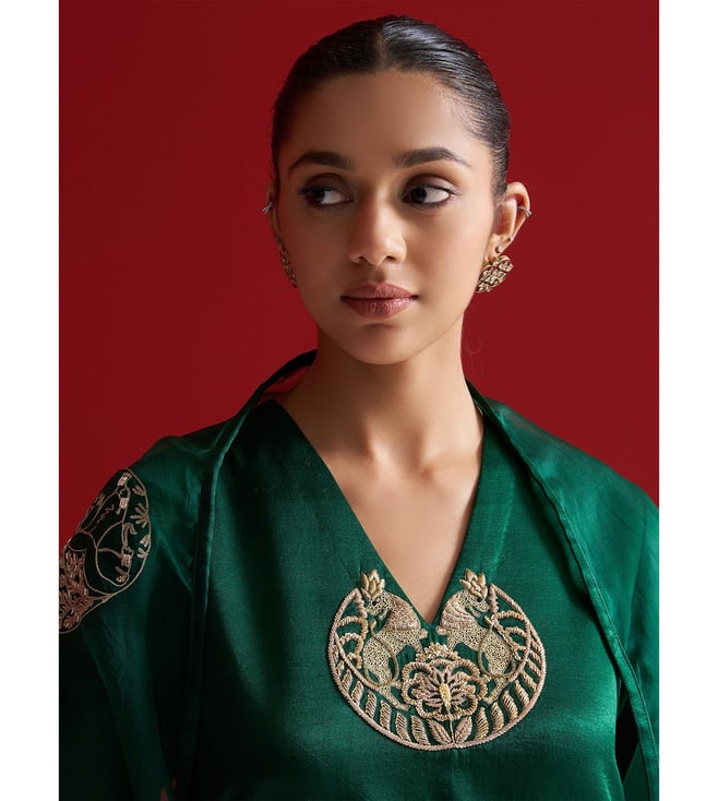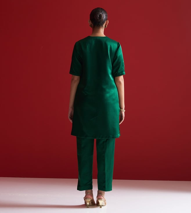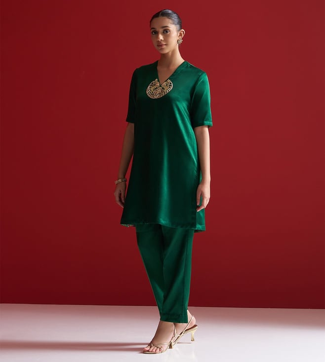 Sitaraa Forest Green Gajji Silk Regular Fit Kurta With Pants