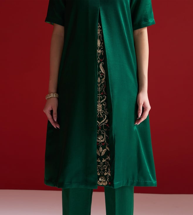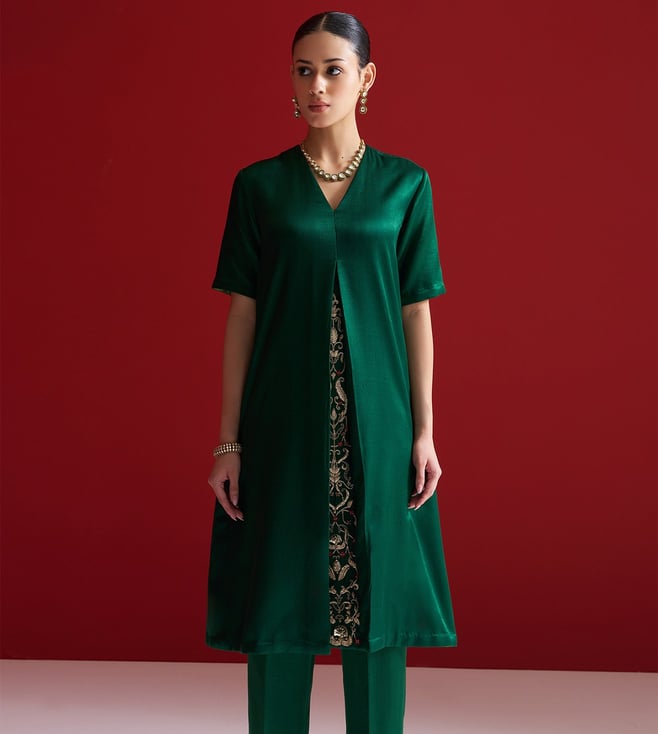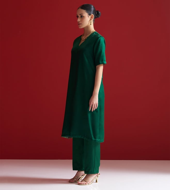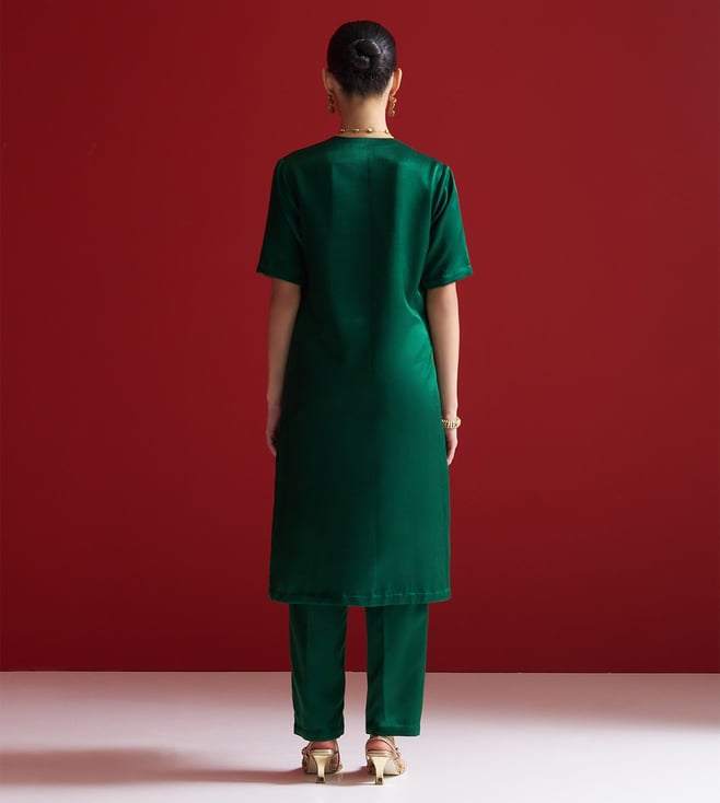 Sitaraa Green Gajji Silk Regular Fit Kurta With Pants