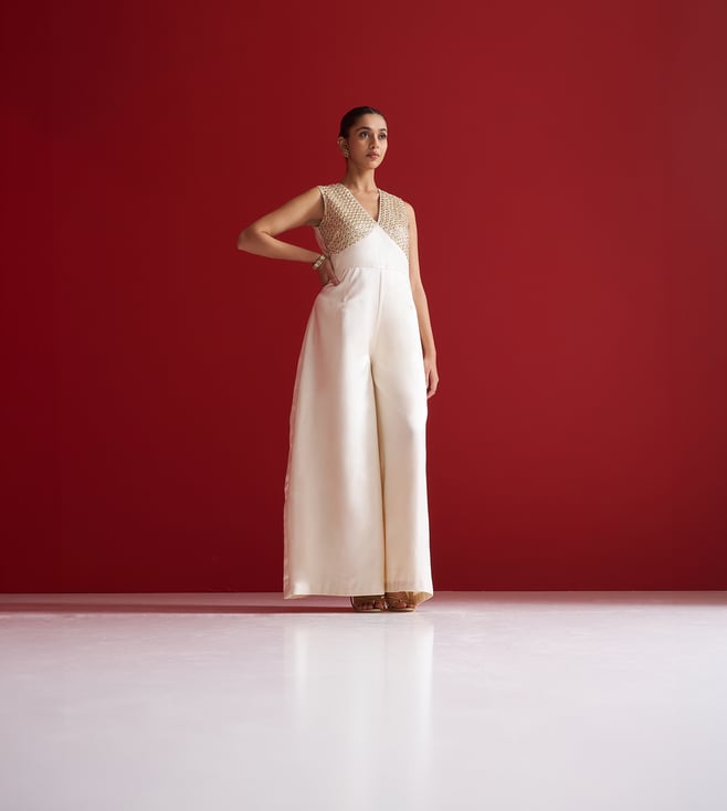 Sitaraa Ivory Gajji Silk Regular Fit Jumpsuit