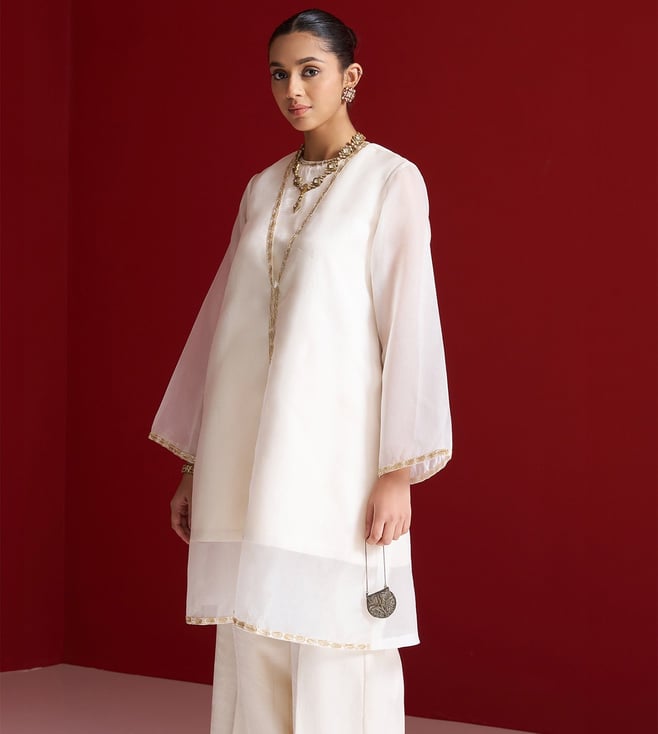 Sitaraa Ivory Gajji Silk Regular Fit Overlay With Inner & Pants